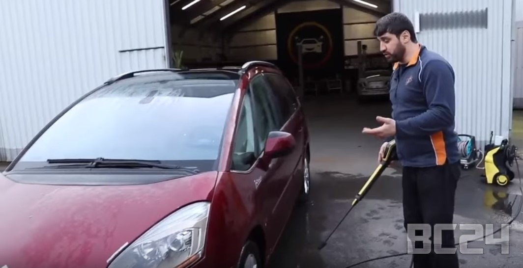 Сначала необходимо сбить грязь и песок с кузова автомобиля, для этого окатываем ее из ведра несколько раз, если есть мини-мойка керхер, то вообще прекрасно.
