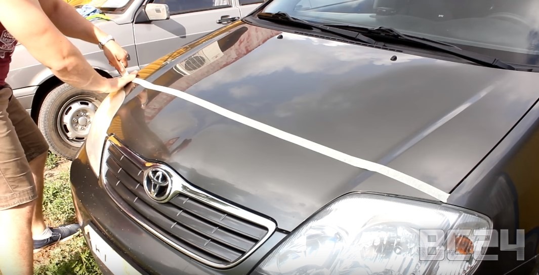Очень часто люди, отправляясь на моря, заклеивают свой автомобиль: капот или бампер клейкой лентой, чтобы избежать появления сколов. После воздействия ветра такая лента отходит немного и туда попадает пыль.
